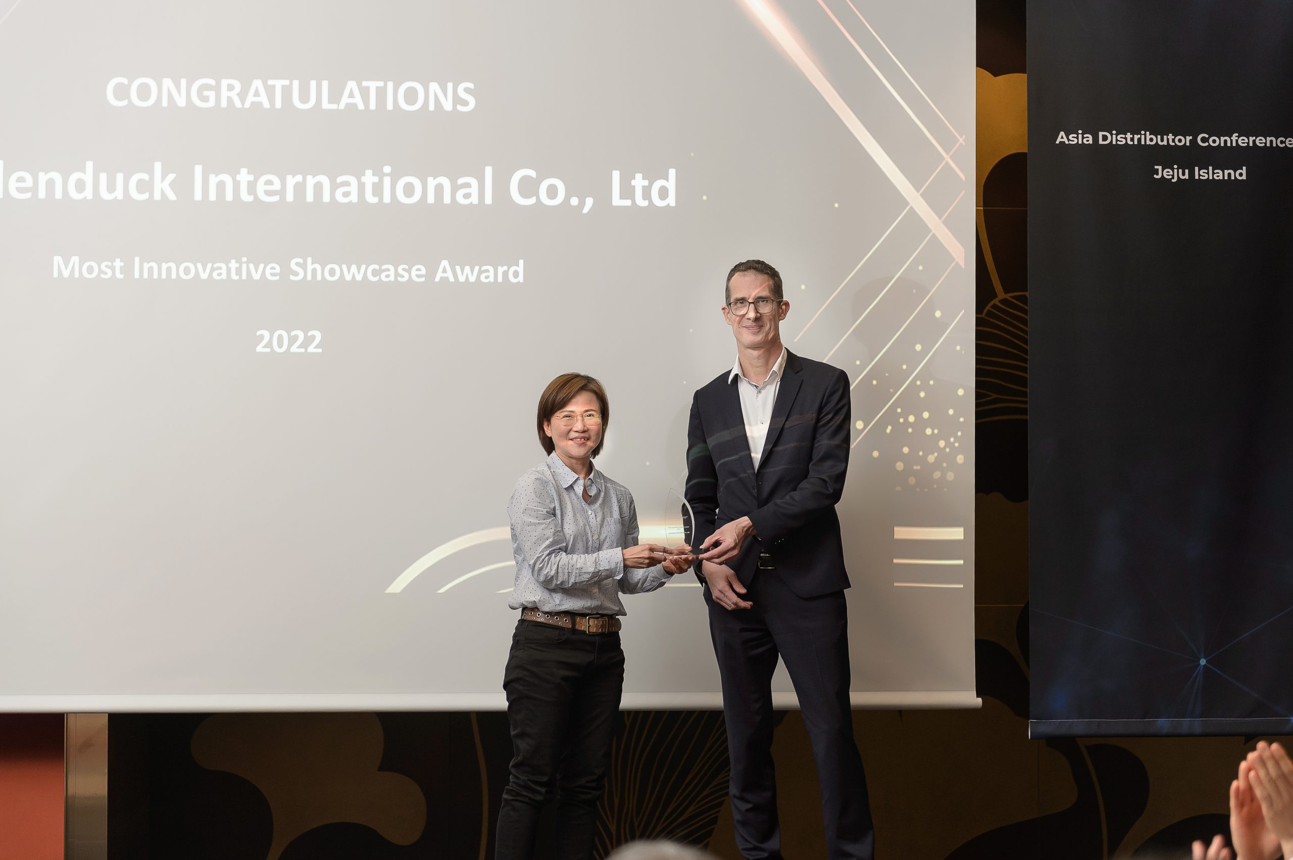เมื่อวันที่ 16 มีนาคม 2023 ที่ผ่านมา ภายในงาน Analog Way Asia Distributor Conference 2023 ซึ่งงานถูกจัดขึ้นเป็นครั้งแรกที่เกาะ Jeju Island ประเทศเกาหลีใต้ ทาง Goldenduck Group เป็นเกียรติอย่างยิ่งที่ได้รับรางวัล Most Innovative Showcase Award 2022 จากทาง Analog Way