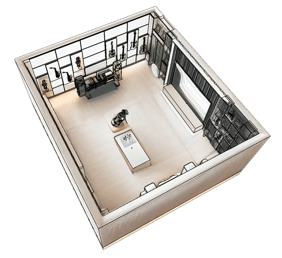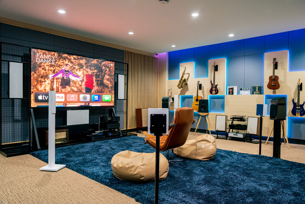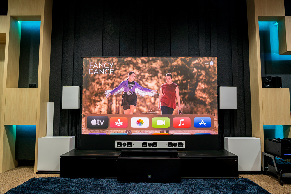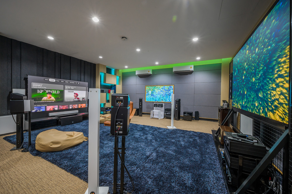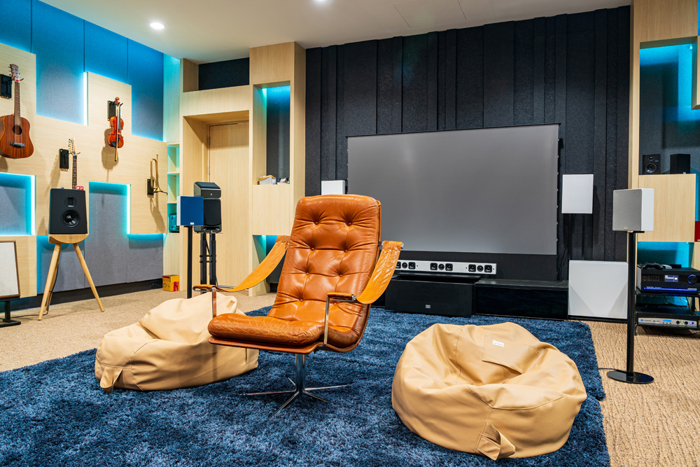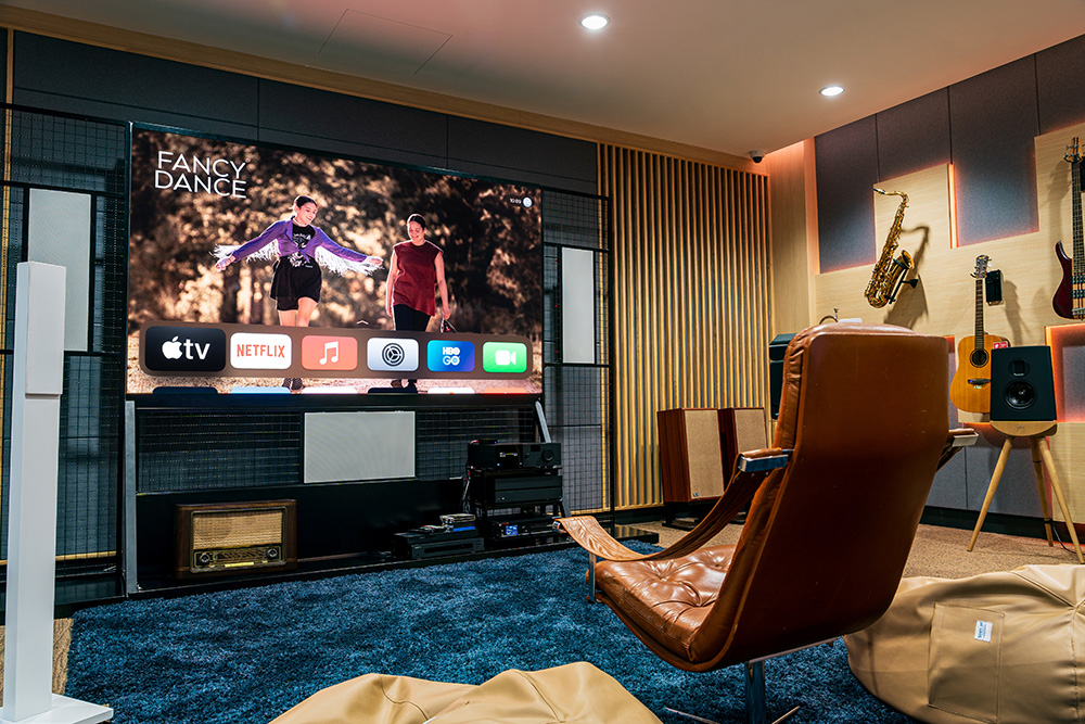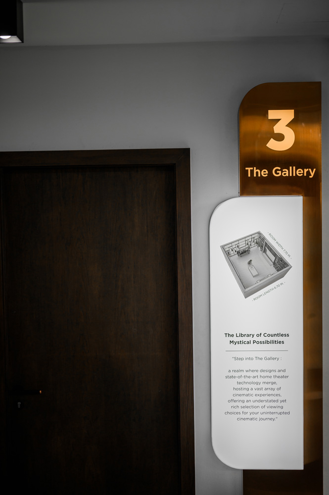 "Step into The Gallery : a realm where designs and state-of-the-art home theater technology merge, hosting a vast array of cinematic experiences, offering an understated yet rich selection of viewing choices for your uninterrupted cinematic journey."