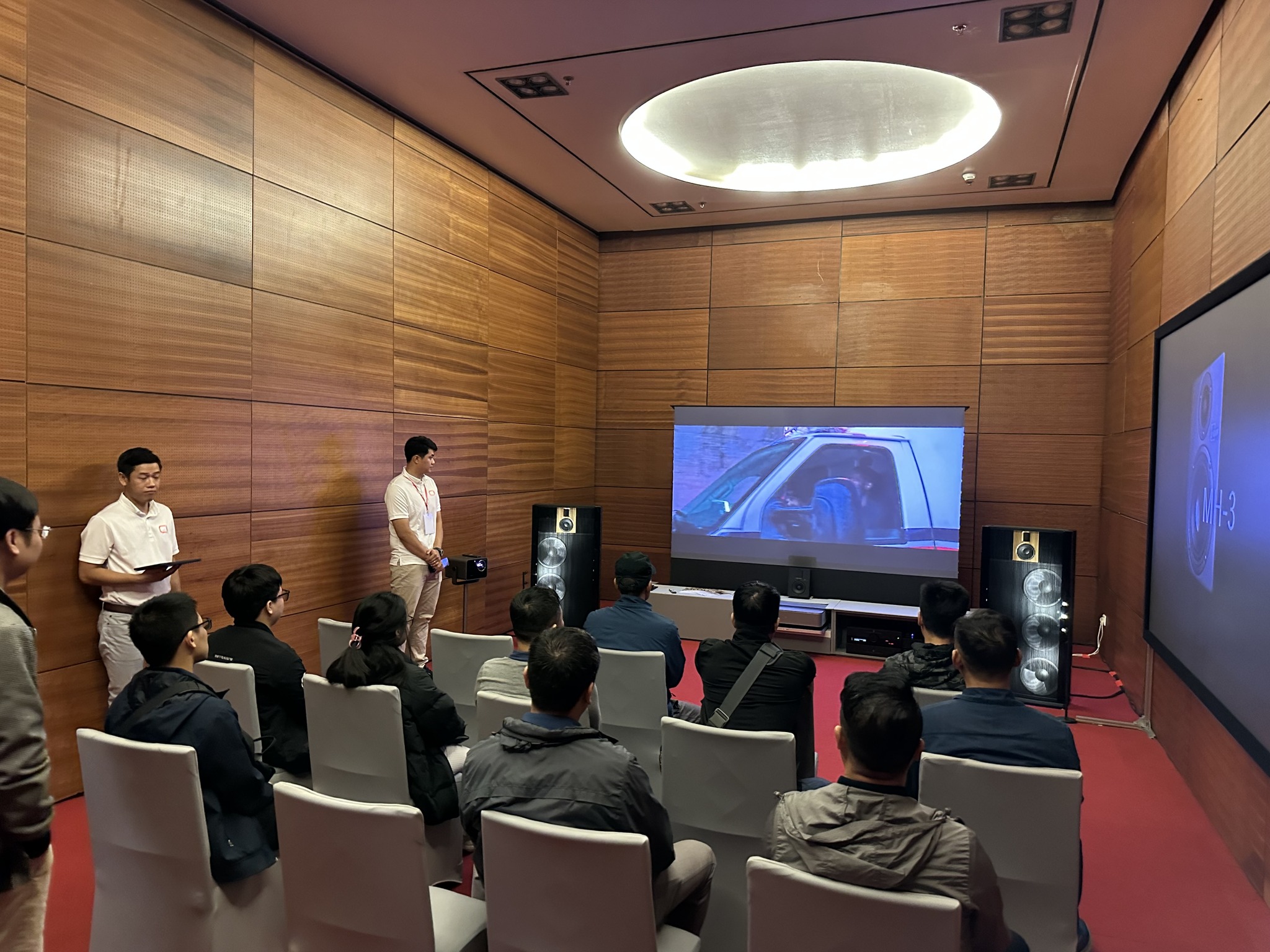 Bên trong khu vực trình diễn, khách mời được đắm chìm trong không gian âm thanh vòm chân thực, tái hiện chính xác mọi chi tiết—from dải trầm mạnh mẽ, không gian âm thanh rộng mở cho đến giọng thoại rõ ràng, sắc nét. Song song đó, hệ thống hình ảnh mang đến độ rõ nét vượt trội, màu sắc sống động và chiều sâu ấn tượng, giúp mỗi khung hình và cảm xúc trở nên trọn vẹn hơn bao giờ hết.